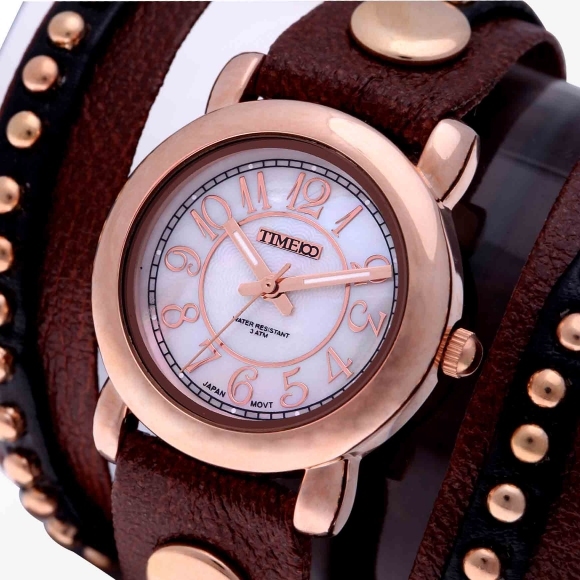 TIME100时光一百 简约复古罗马刻度日历钢带情侣女表W80069L