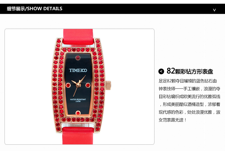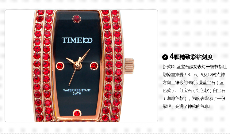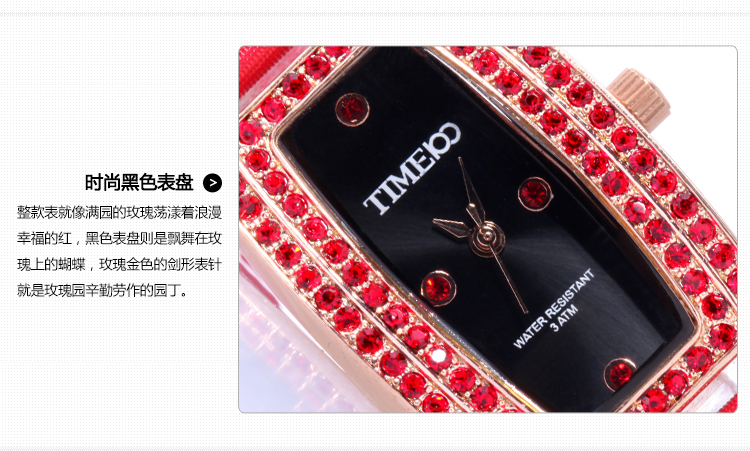 欧美流行优雅弧线OL宝石淑女手表 (全国包邮)