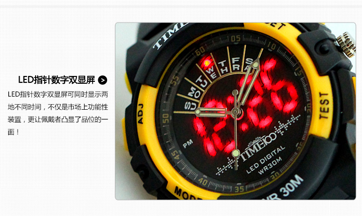 很漂亮的一款运动表,很时尚漂流的时候戴着都不怕进水,防水很棒