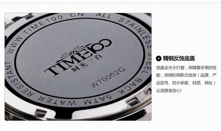 TIME100时光一百 经典简约商务日历钢带情侣女表W80068L