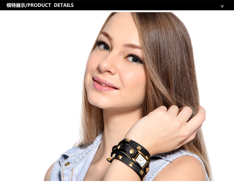 欧美流行钮钉长皮带女士手表 (全国包邮)