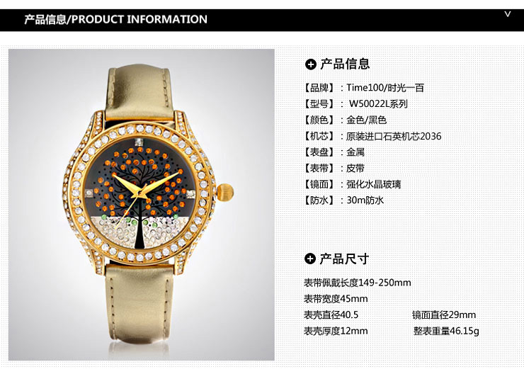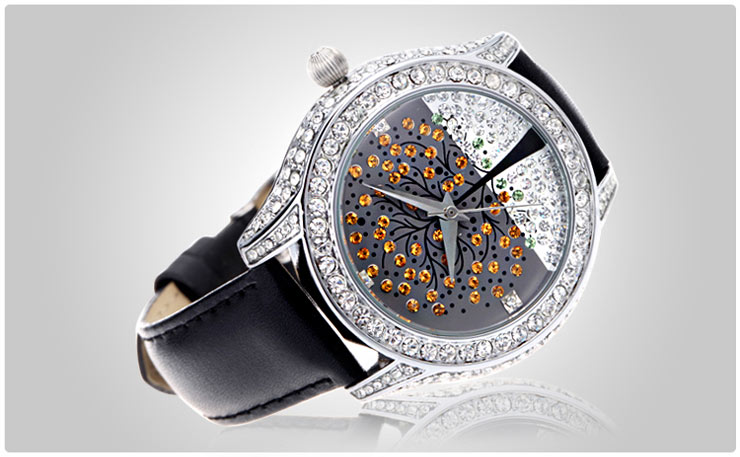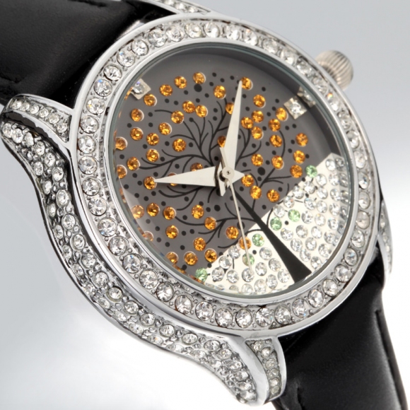 浪漫许愿树镶钻真皮女表 (全国包邮)