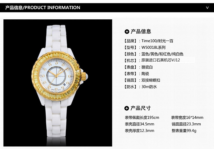 时光一百精密陶瓷镶钻女士手表 (全国包邮),钢带表免费赠送拆带器。