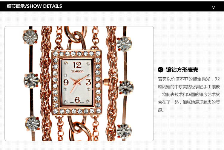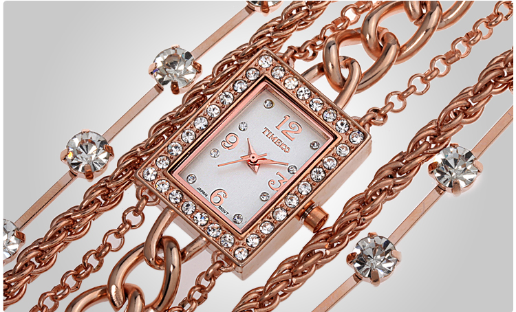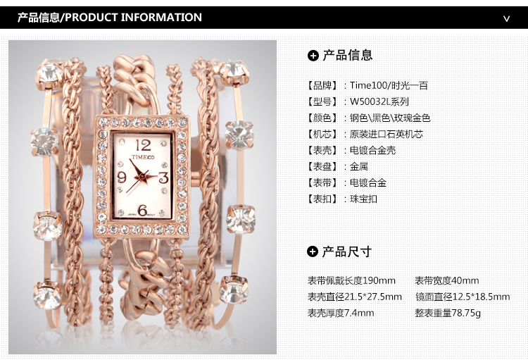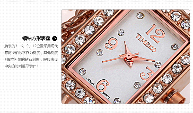 时尚椭圆形闪钻手链女表W50170L间玫瑰金