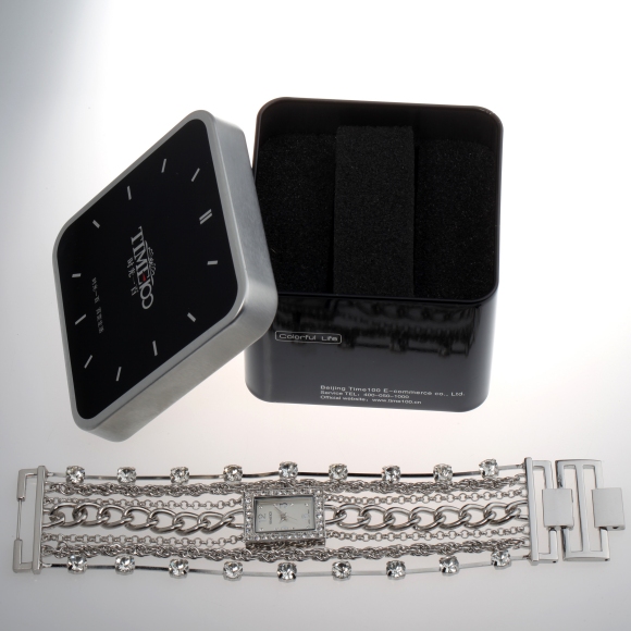 时光一百(TIME100)女表小表盘简约防水女士腕表套装女手链手表七夕礼物送女友W50888L钢色