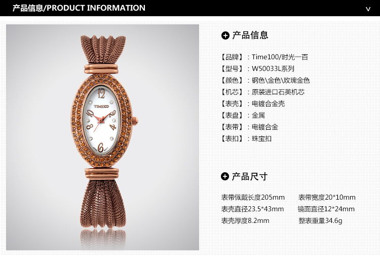 时尚椭圆形闪钻手链女表W50170L间玫瑰金