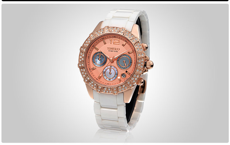 三眼多功能天然贝母闪钻高精密航天陶瓷女表 (全国包邮)