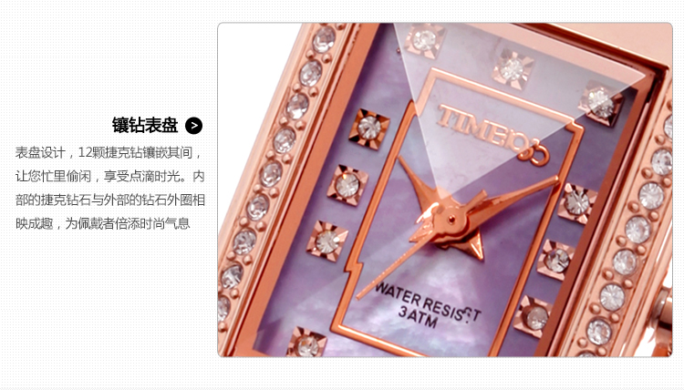 时尚椭圆形闪钻手链女表W50170L间玫瑰金