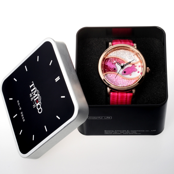 闪钻海洋水晶鱼真皮防水表 (全国包邮)