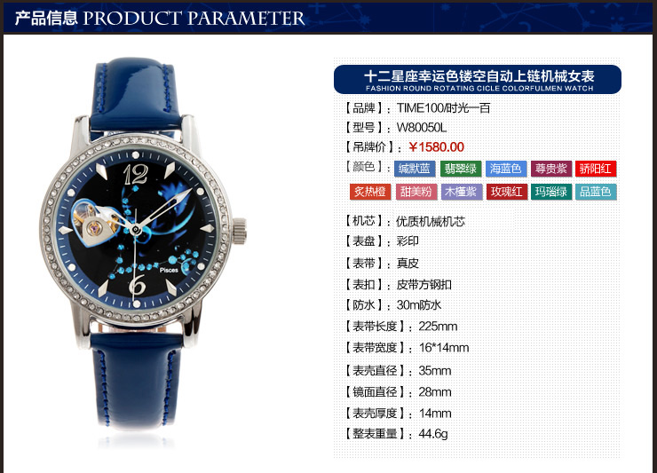 十二星座系列自动机械表女士腕表 (全国包邮)