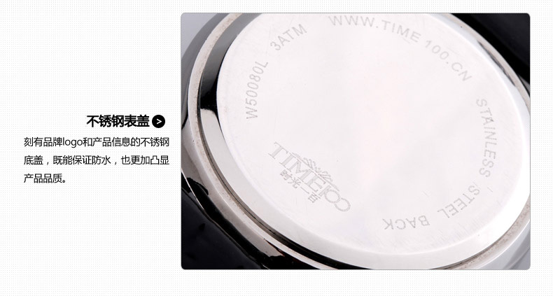 TIME100时光一百 经典简约商务日历钢带情侣女表W80068L