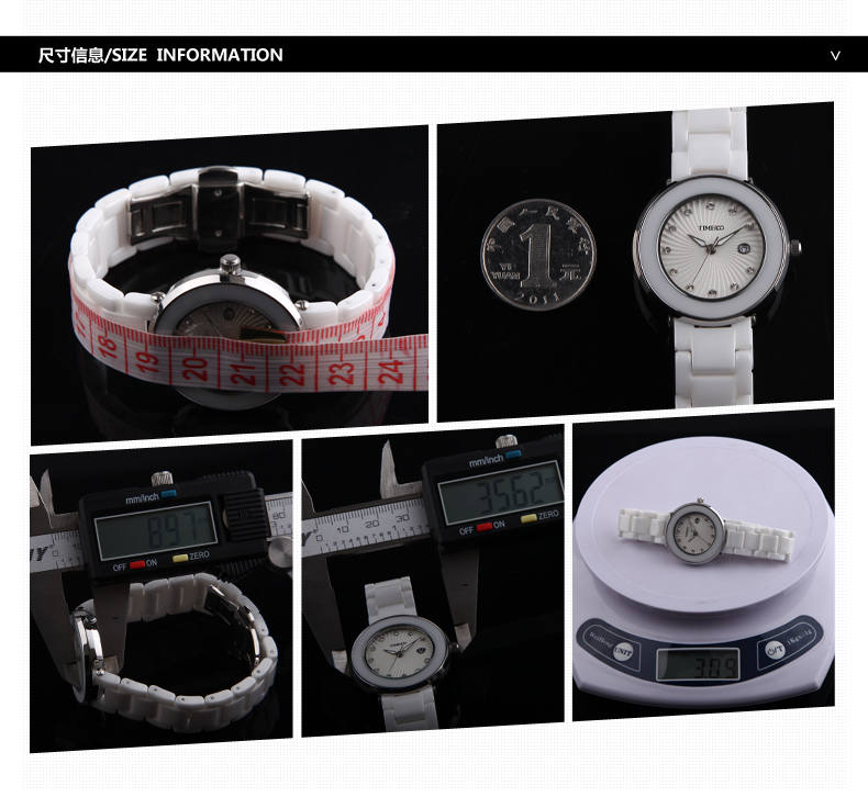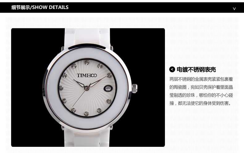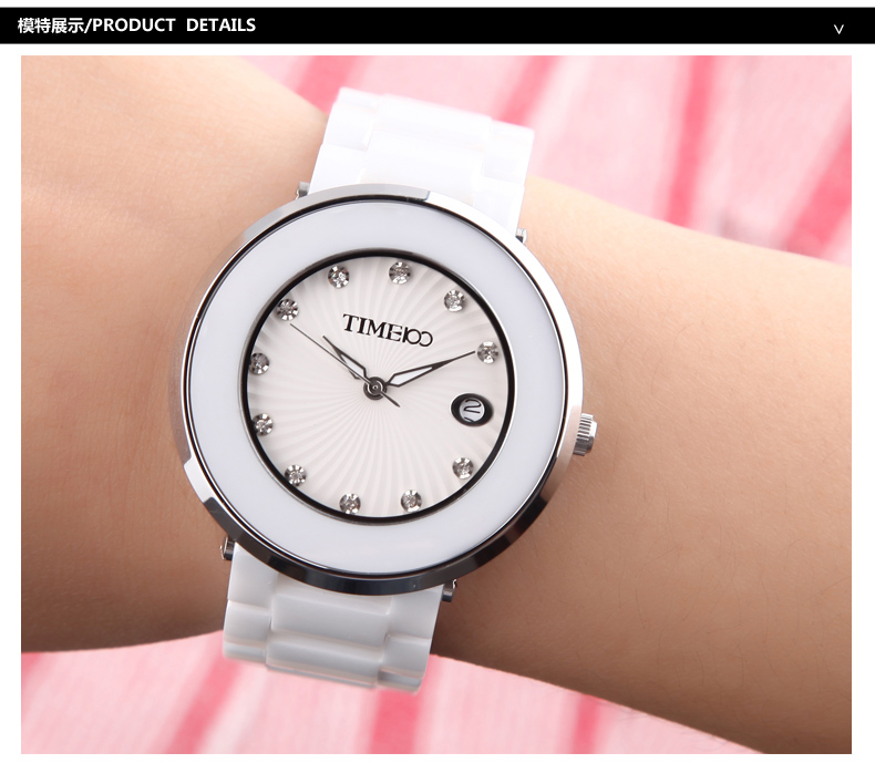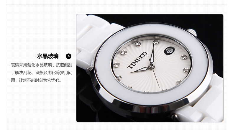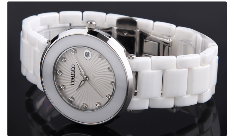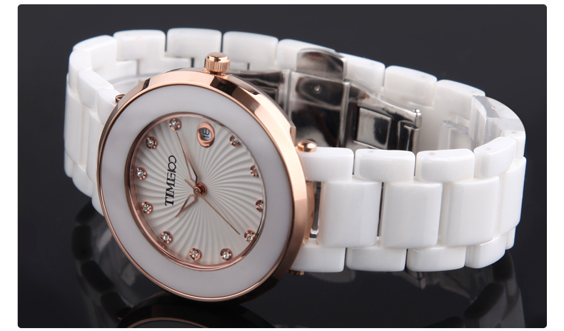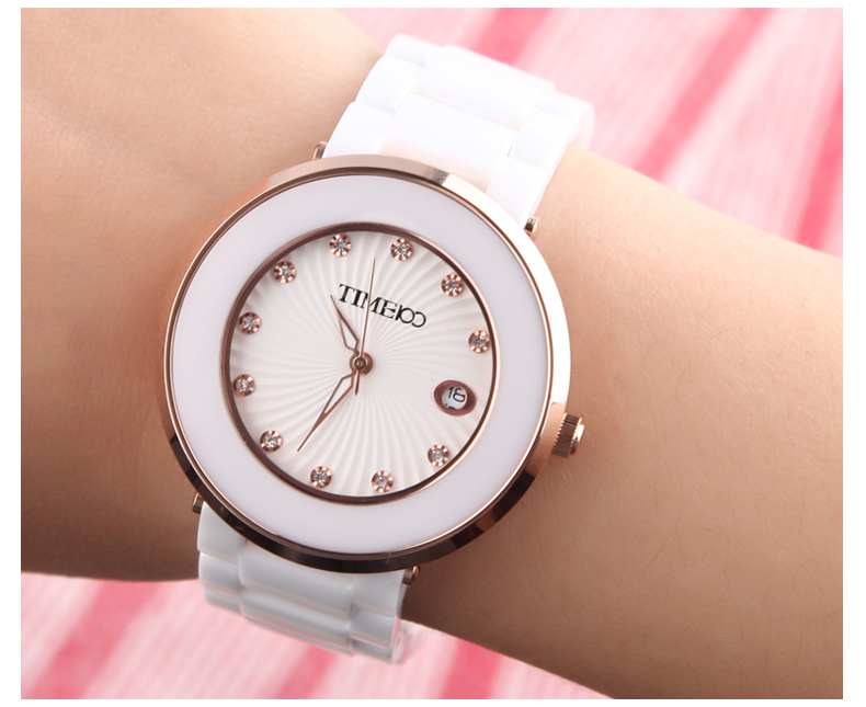 时尚圆形闪钻日历陶瓷女表 (全国包邮)