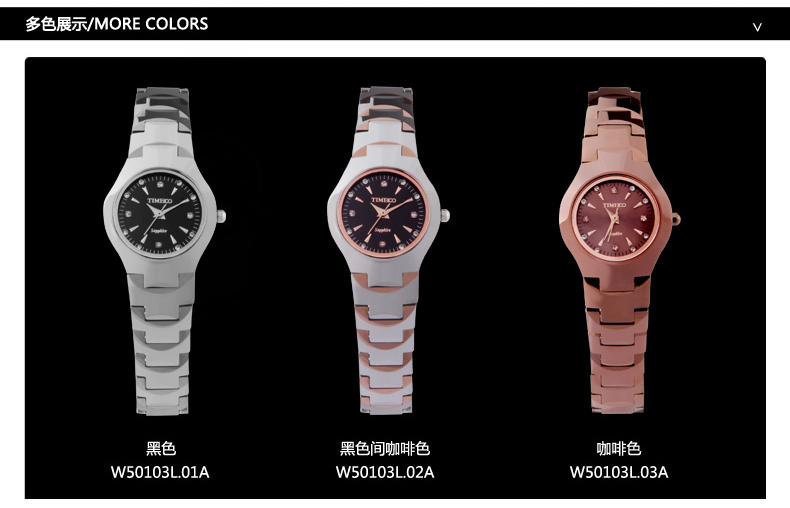 当前位置:首页 > 时尚圆形正品钨钢女士手表防水石英表W50103L