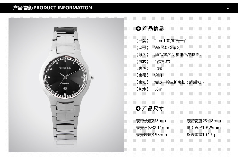 当前位置:首页 > 时尚圆形正品钨钢男士手表防水石英表W50107G