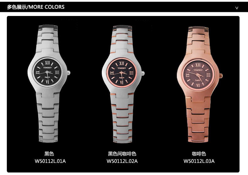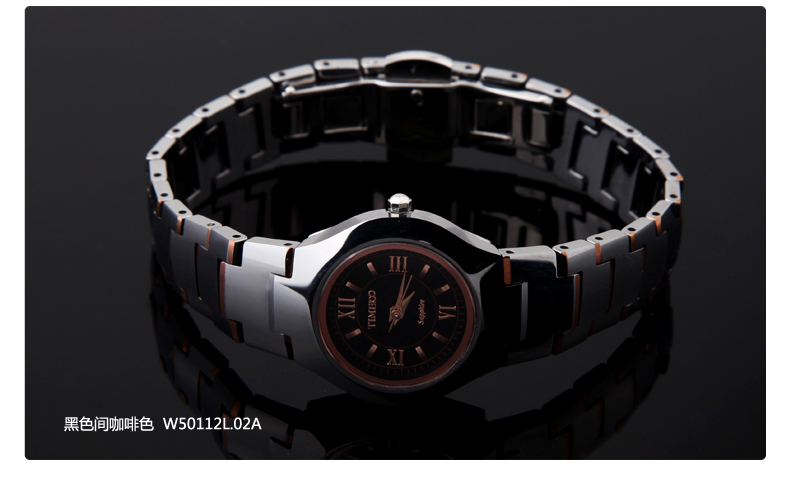 当前位置:首页 > 时尚圆形正品钨钢女士手表防水石英表W50112L