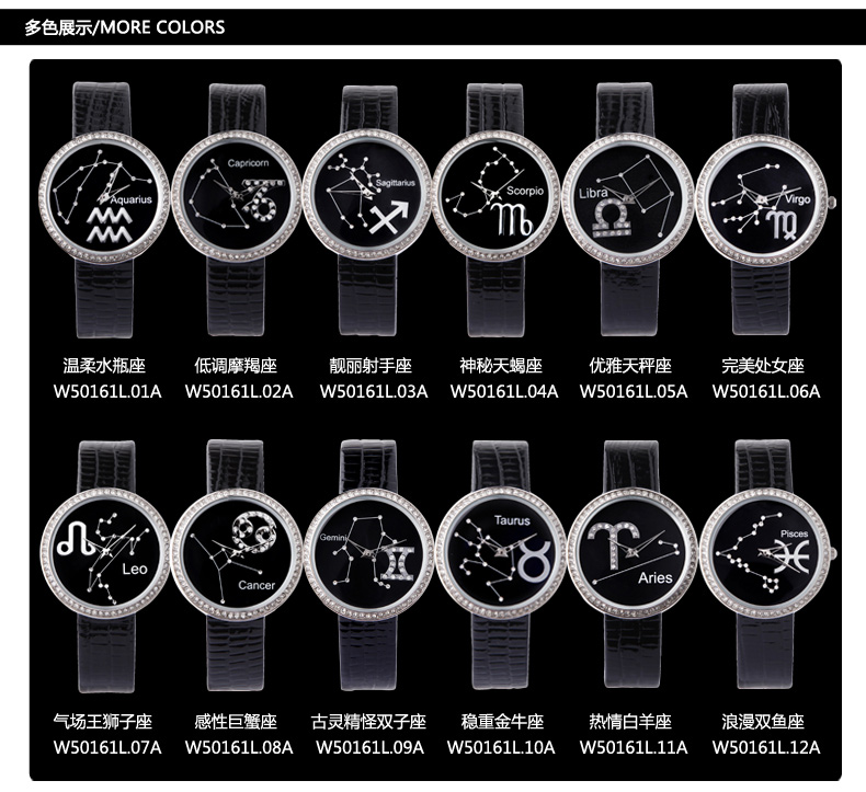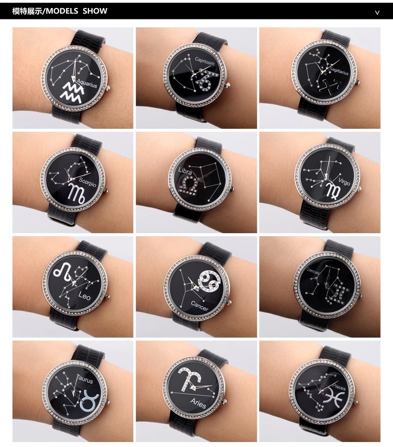 12星座闪钻皮带女士手表 全国包邮(此商品不可以使用红包)