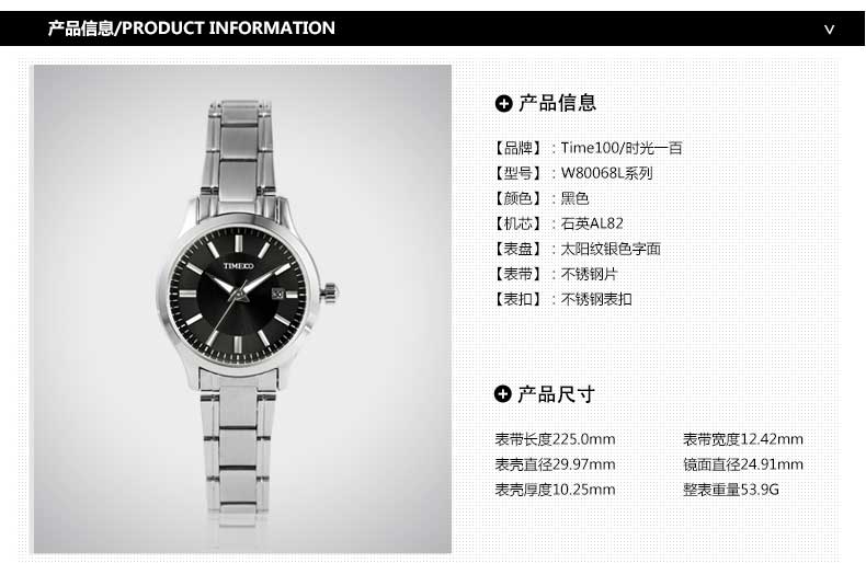 TIME100时光一百 经典简约商务日历钢带情侣女表 全国包邮
