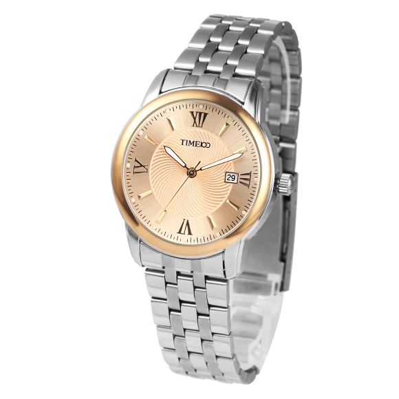 TIME100时光一百 简约复古罗马刻度日历钢带情侣男表 全国包邮