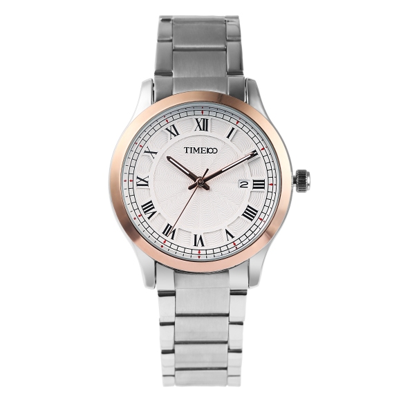 TIME100时光一百 简约复古立体水波纹日历钢带情侣男表 全国包邮