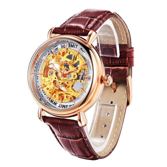 TIME100全自动镂空真皮机械表男表 全国包邮