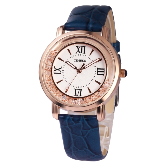 时光一百 简约复古灵动闪钻真皮女表 全国包邮