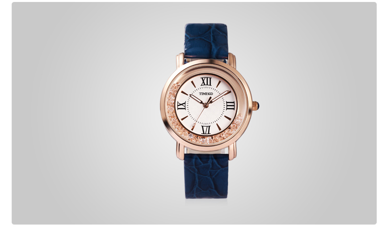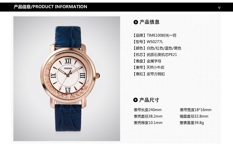 时光一百 简约复古灵动闪钻真皮女表 全国包邮