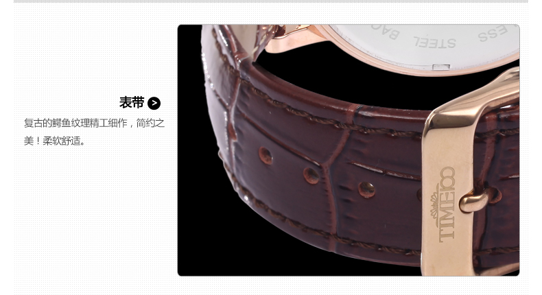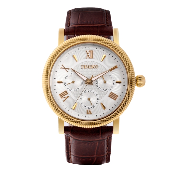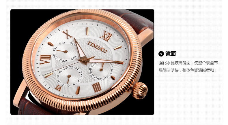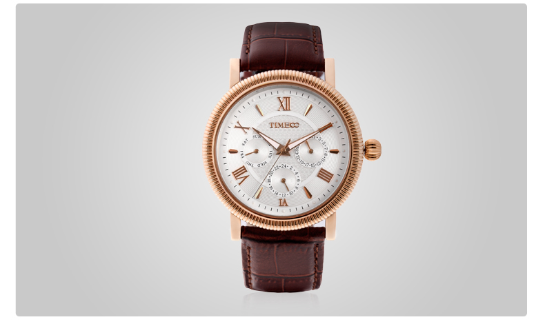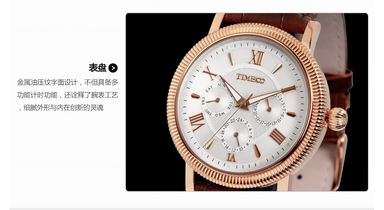 TIME100时光一百 古典罗马刻度多功能真皮石英男表 全国包邮