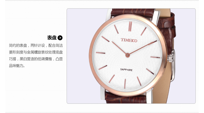 时光一百Smileyes系列 商务休闲条钉时标皮带石英男表TSW020G