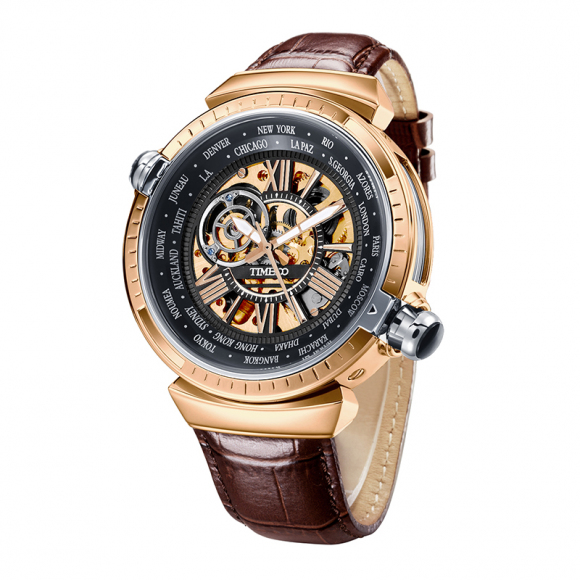 世界时区飞轮镂空机械表牛皮男表 (全国包邮)