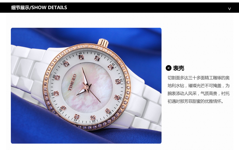 时尚镶钻高科技精密陶瓷石英女表 (全国包邮)