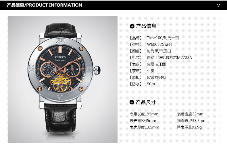 • 机芯类型:自动上链机械+手动上链机械