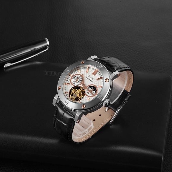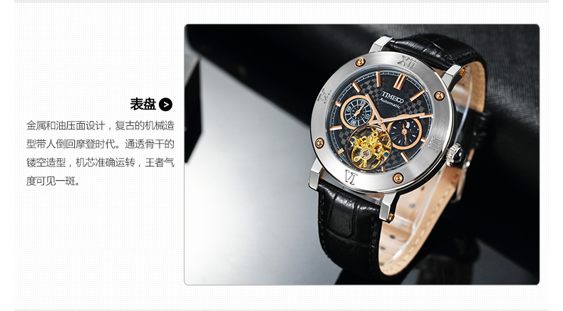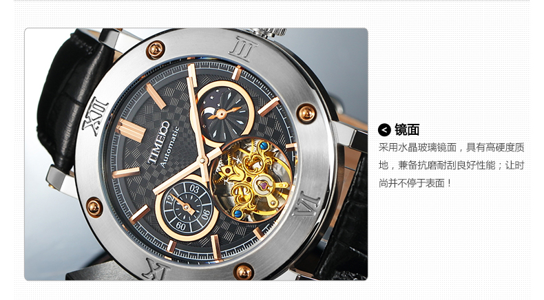 全自动镂空真皮机械表男表 (全国包邮)