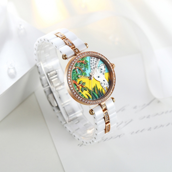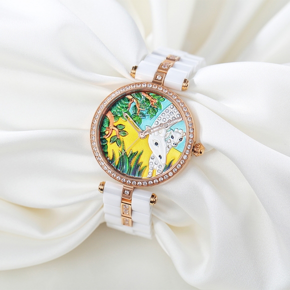时尚灵动立体雕花珐琅陶瓷女士腕表 (全国包邮)