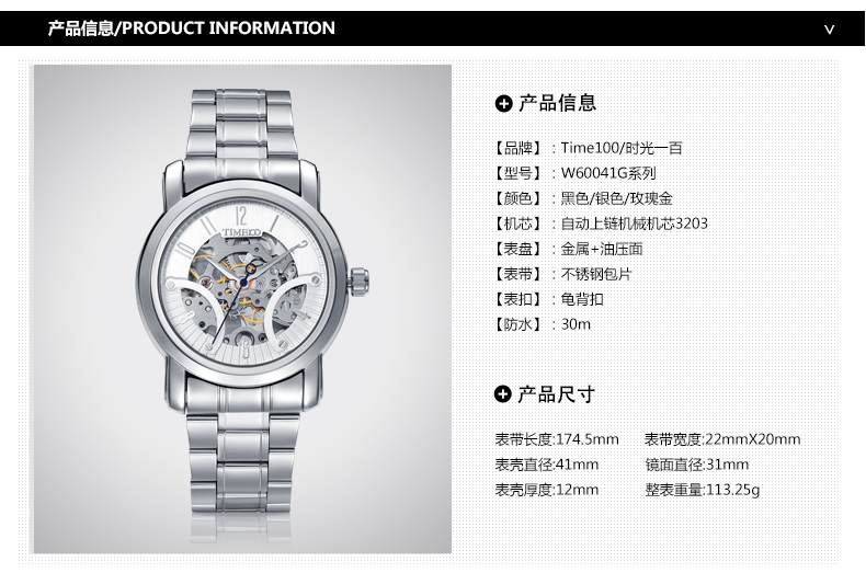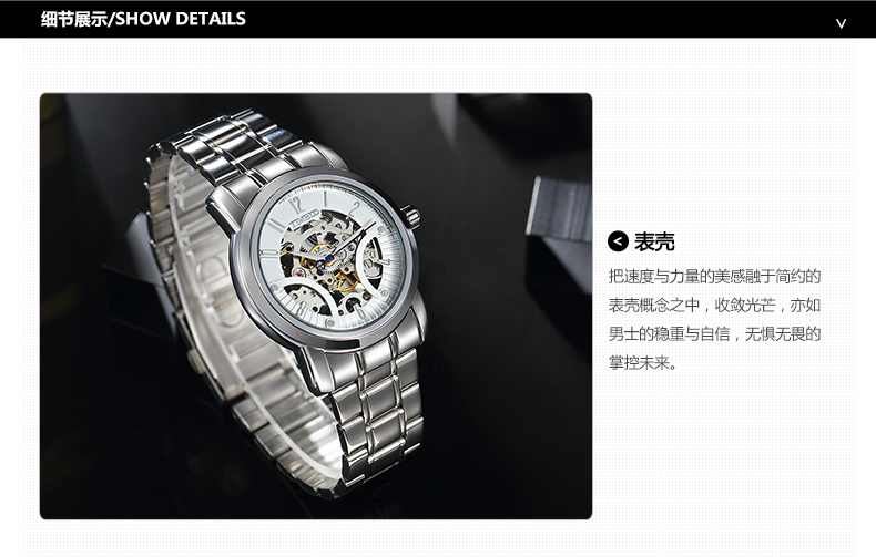 • 表壳材质:实体不锈钢金属