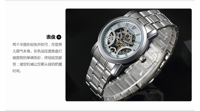 经典简约镂空自动上链机械表男表 (全国包邮)