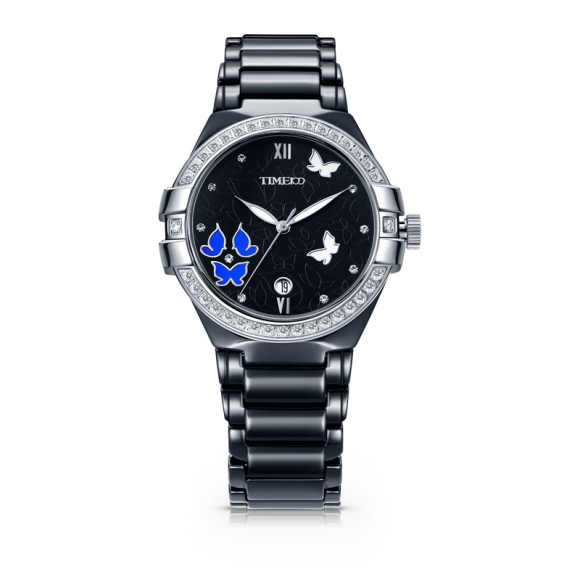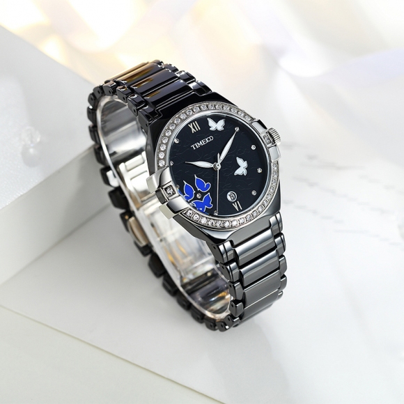 复古甜美蝴蝶水钻陶瓷女士腕表