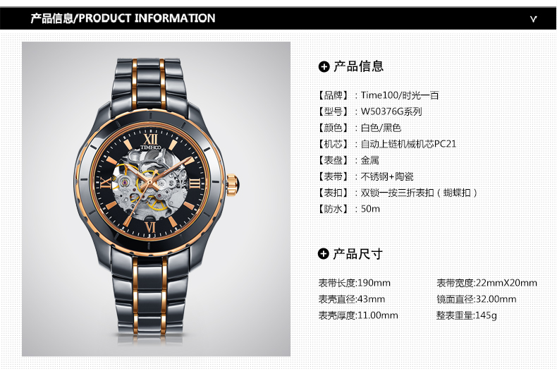 当前位置:首页 > 时尚镂空炫酷陶瓷自动上链男士机械手表W50376G