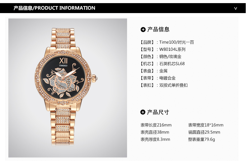 时尚椭圆形闪钻手链女表W50170L间玫瑰金