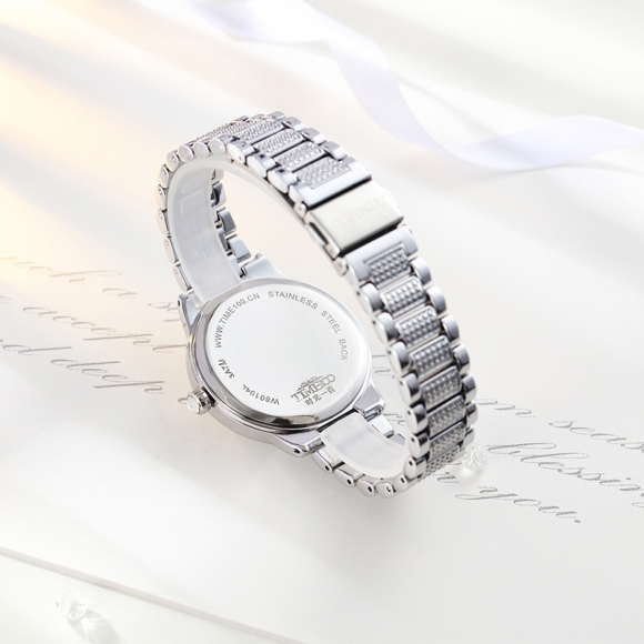 时光一百(TIME100)女表小表盘简约防水女士腕表套装女手链手表七夕礼物送女友W50888L钢色