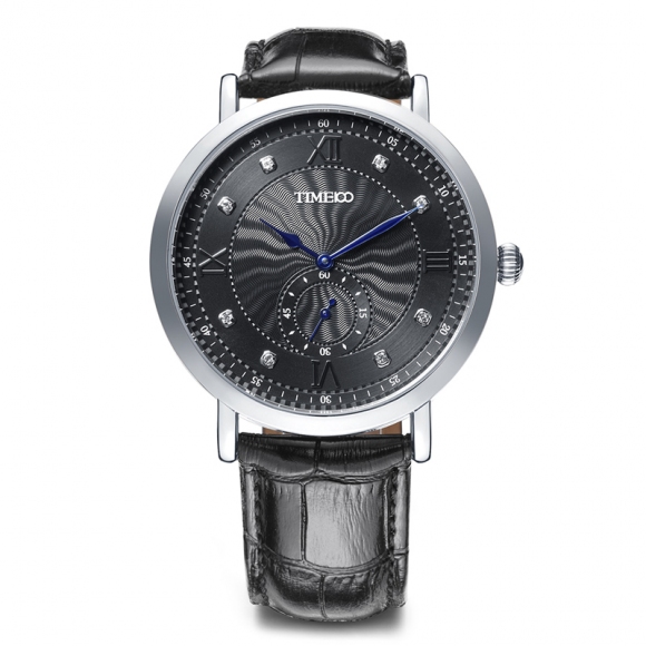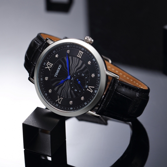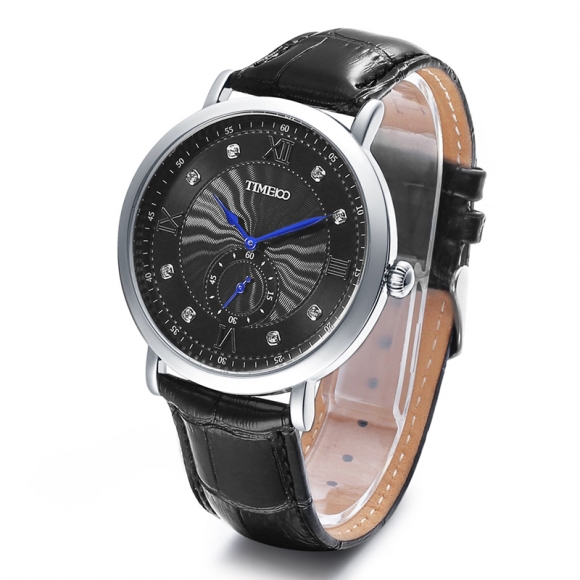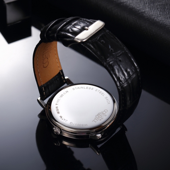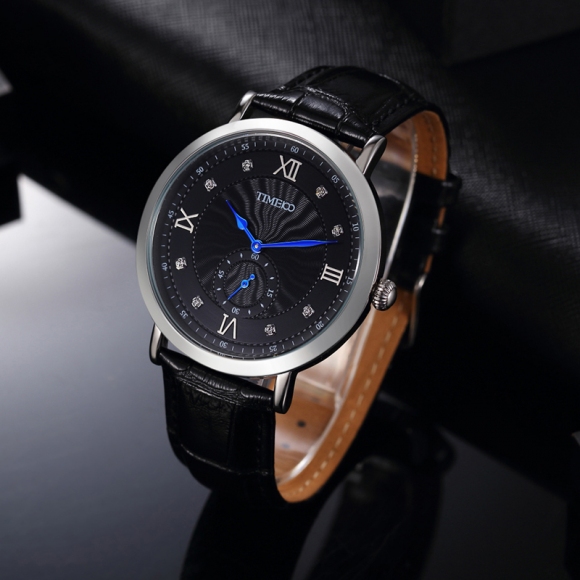 时光一百 时尚简约闪钻真皮石英男表