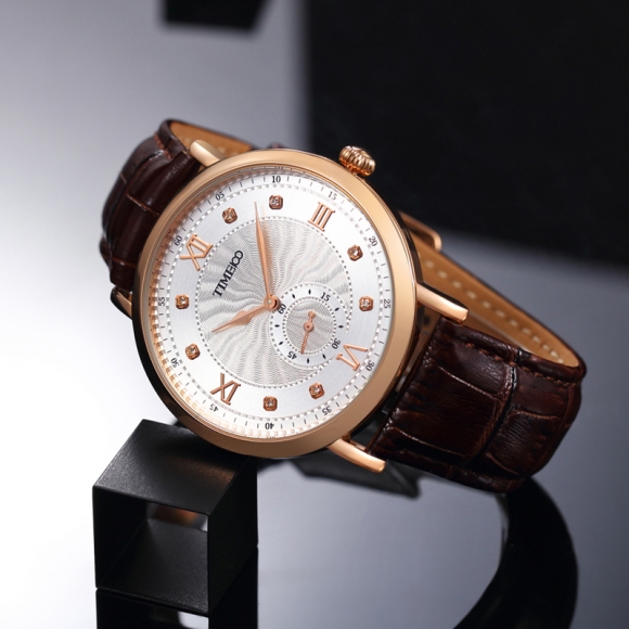 时光一百 时尚简约闪钻真皮石英男表