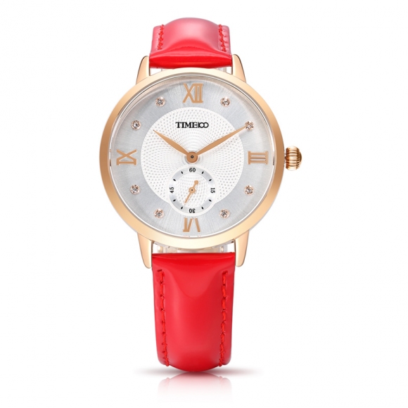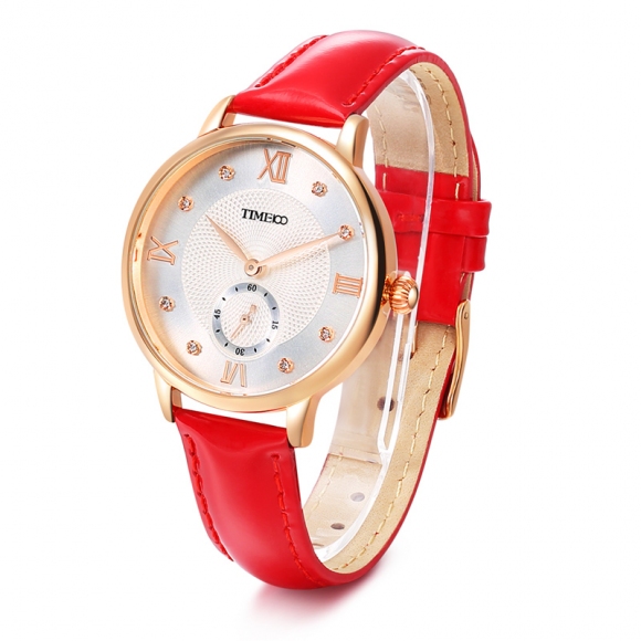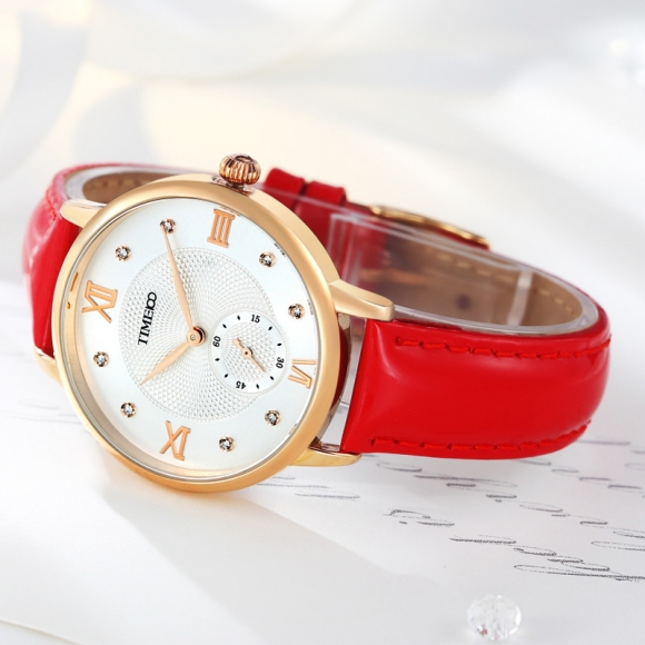 时光一百 时尚复古闪钻亮光真皮石英女表