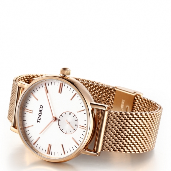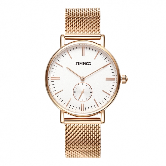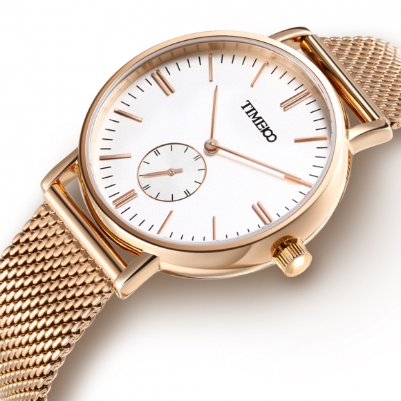 TIME100时光一百 简约复古罗马刻度日历钢带情侣女表W80069L