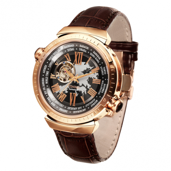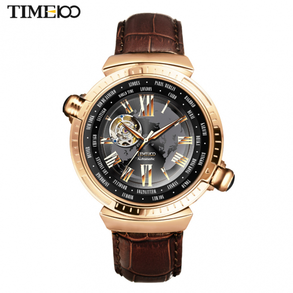 先机系列 世界时区镂空全自动真皮机械表男表 香港钟表设计大赛获奖作品,巴塞尔参展手表