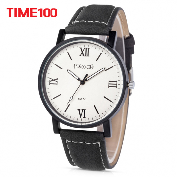 时光一百Smileyes系列 商务休闲罗马数字皮带石英男表