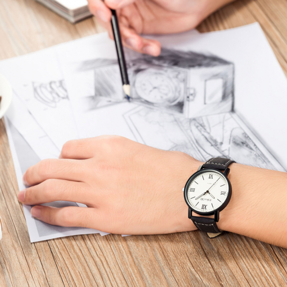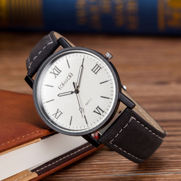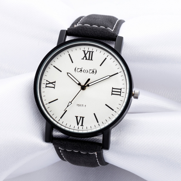 时光一百 罗马数字薄款皮带石英男表W80226G