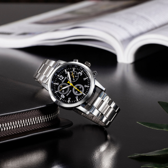 时光一百Smileyes系列 商务运动数字时标钢带石英男表