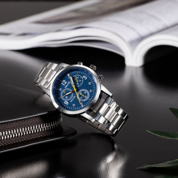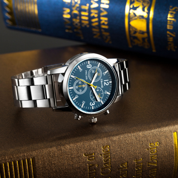 时光一百Smileyes系列 商务运动数字时标钢带石英男表