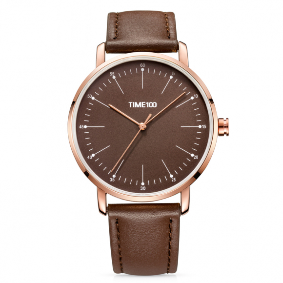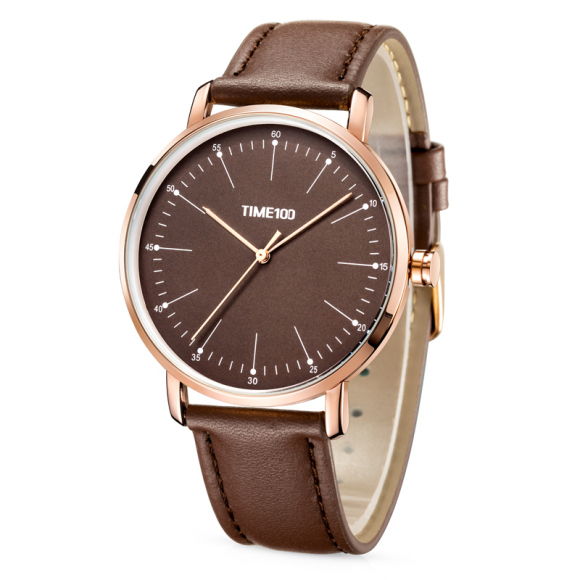 时光一百 简约刻度薄款皮带石英男表