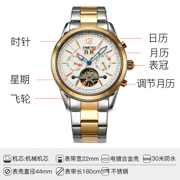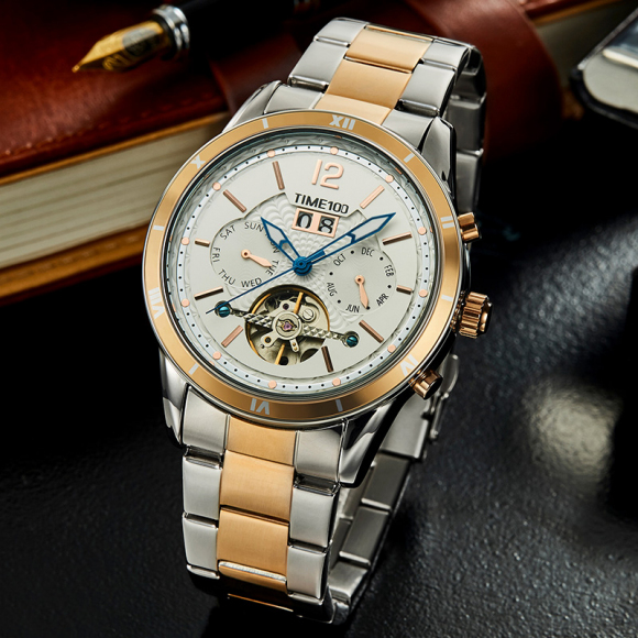 时光一百男表防水自动机械表钢带男士手表潮流休闲腕表